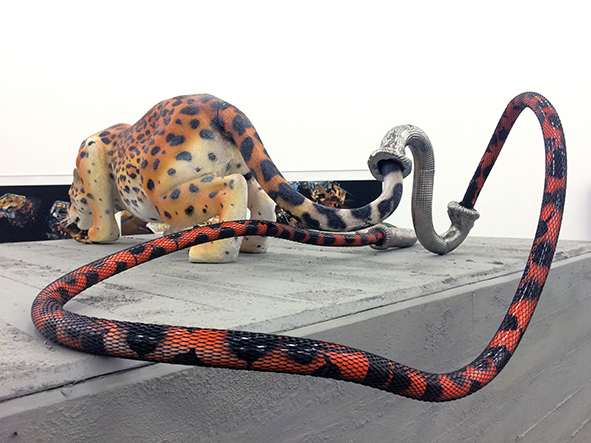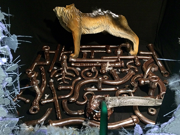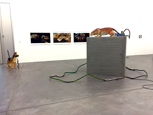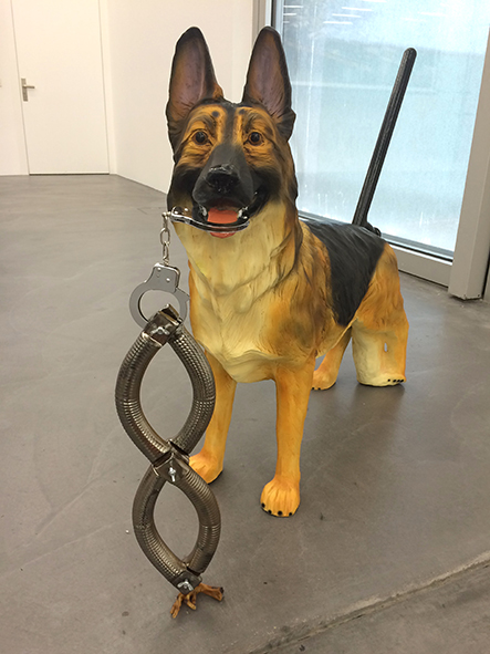 | "COP DOG" polyresin, ceramic, metal glaze, steel screws |